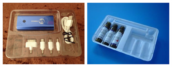 如上圖所示的是吸塑泡殼,吸塑泡殼一般用于產品的外包裝,既可以起到保護產品的作用,也因吸塑的高度透明性,可以在中間加入卡紙,對產品的附加價值有一個很大的提升,也可使客戶更直觀的看到產品,適用于數碼、玩具、化妝品、五金等行業。材料一般用PVC和PET。