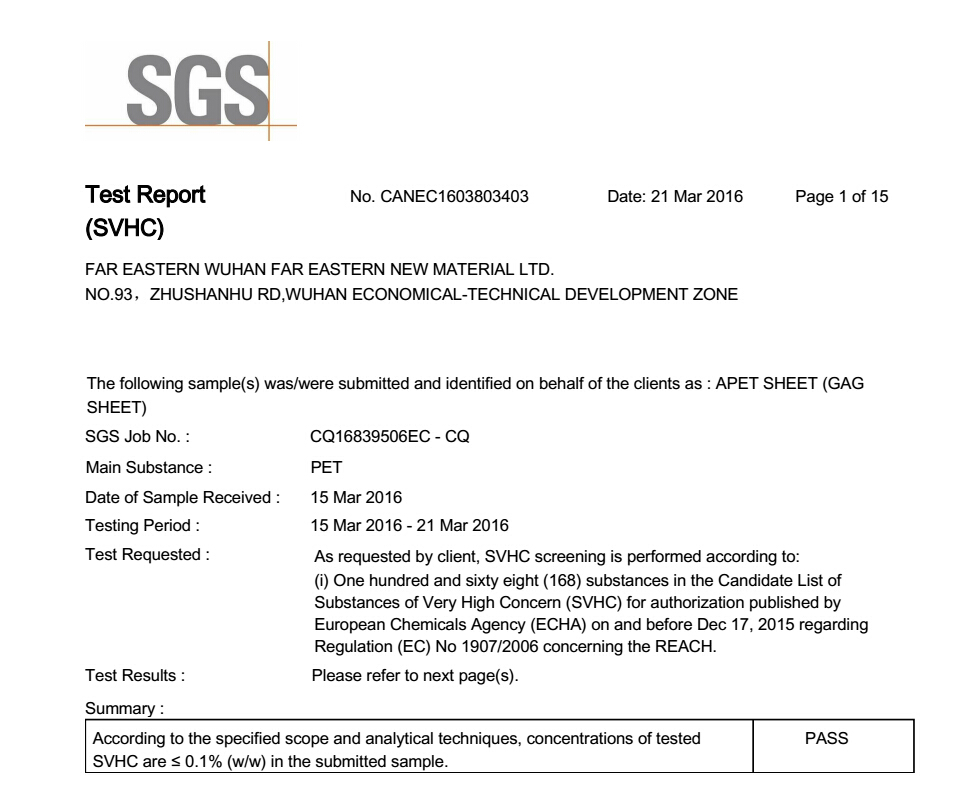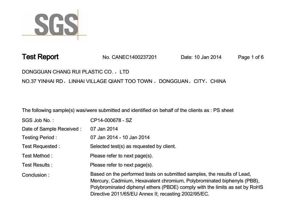 英碩吸塑包裝12年來,在行業里積攢了各種良好口碑。無論是從吸塑包裝設計還是制作選材,都非常講究,嚴格遵循新時代“綠色”包裝的理念。選材更是不敢含糊,用于食品和醫療類的吸塑包裝材料,都經過權威部門檢測,測試結果均符合歐盟ROHS指令,美國FDA要求。公司環境要求達到十萬級無塵車間并取得ISO9001:2008。以下是英碩包裝PP/PS/ PET/ PETG材料的相關報告